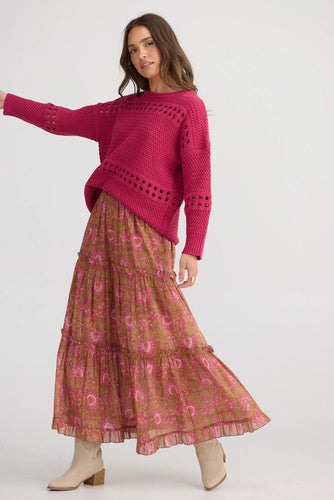 Lagos Soft Khaki Linen Blend Bias Cut Maxi Skirt