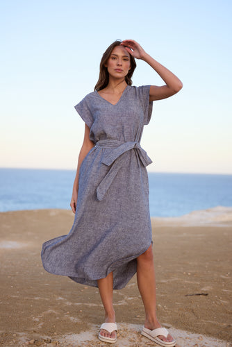 Mona Linlin Pleated buttoned linen tee dress - cinnamon