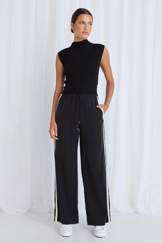 Townie Onyx Velvet Stripe Side Wide Leg Pants