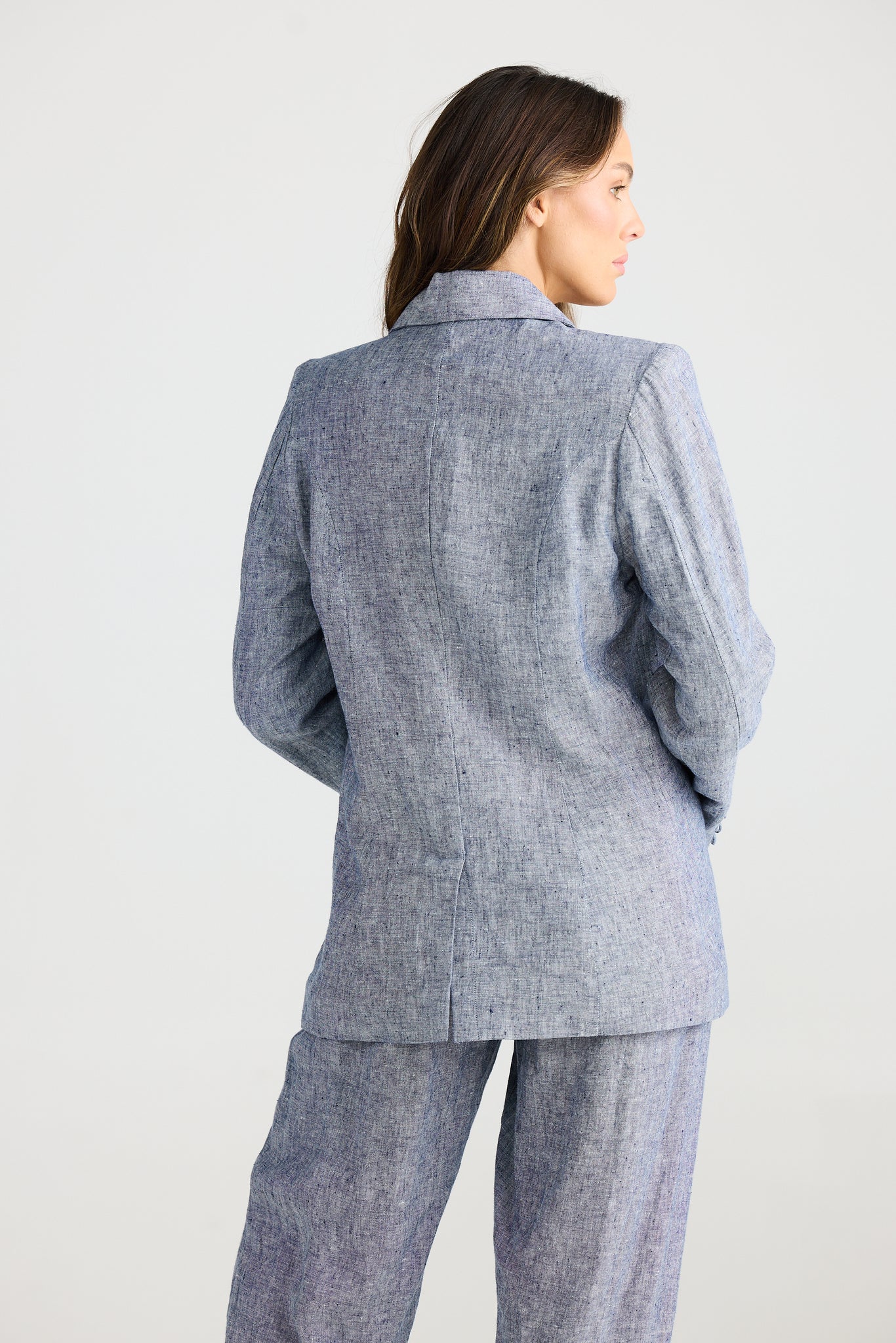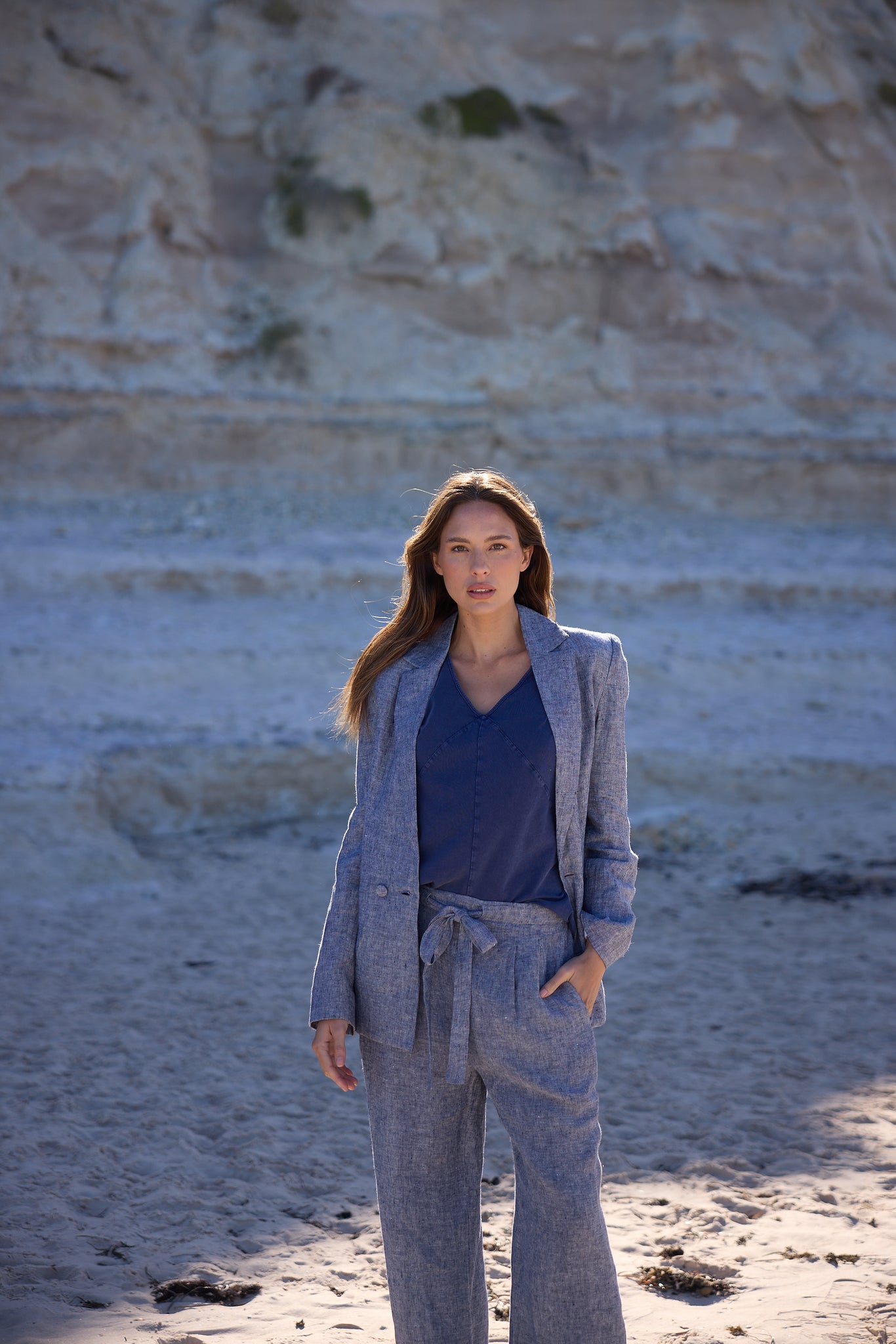 A single breasted style blazer, with front welt pockets, this Linen blazer is a relaxed fit. Fully lined in 100% cotton, it is breathable and kind to your skin - perfect for the coming warmer months.