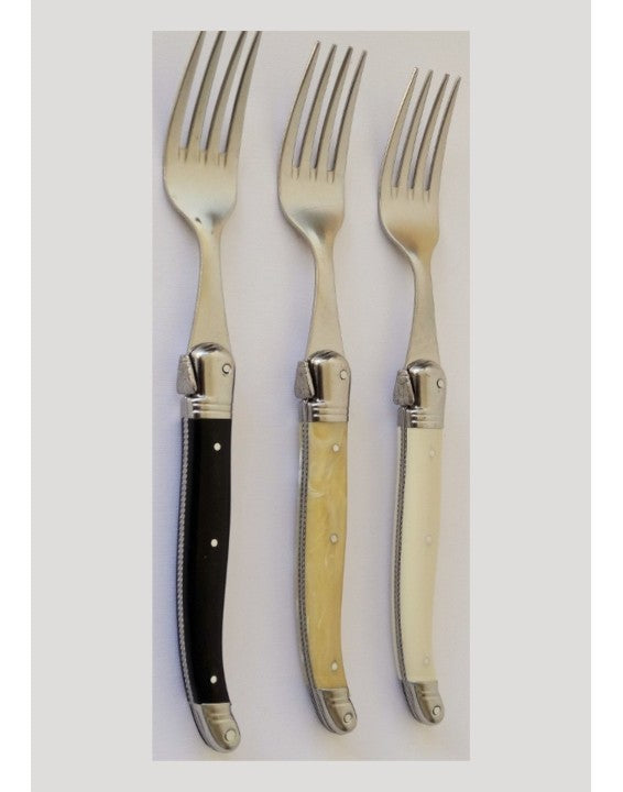 Set 6 dessert forks in gift box Classic handlesSize 170mm longAvailable in black, ivory, horn, dishwasher safe